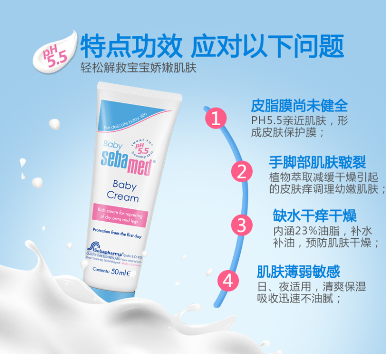 商品名称:德国施巴婴儿护肤组合装(婴儿护面霜50ml+护臀膏100ml)