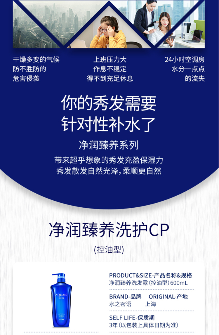 商品名称:日本资生堂水之密语净润臻养洗发露(清爽控油)600毫升+净润臻养护发素600毫升