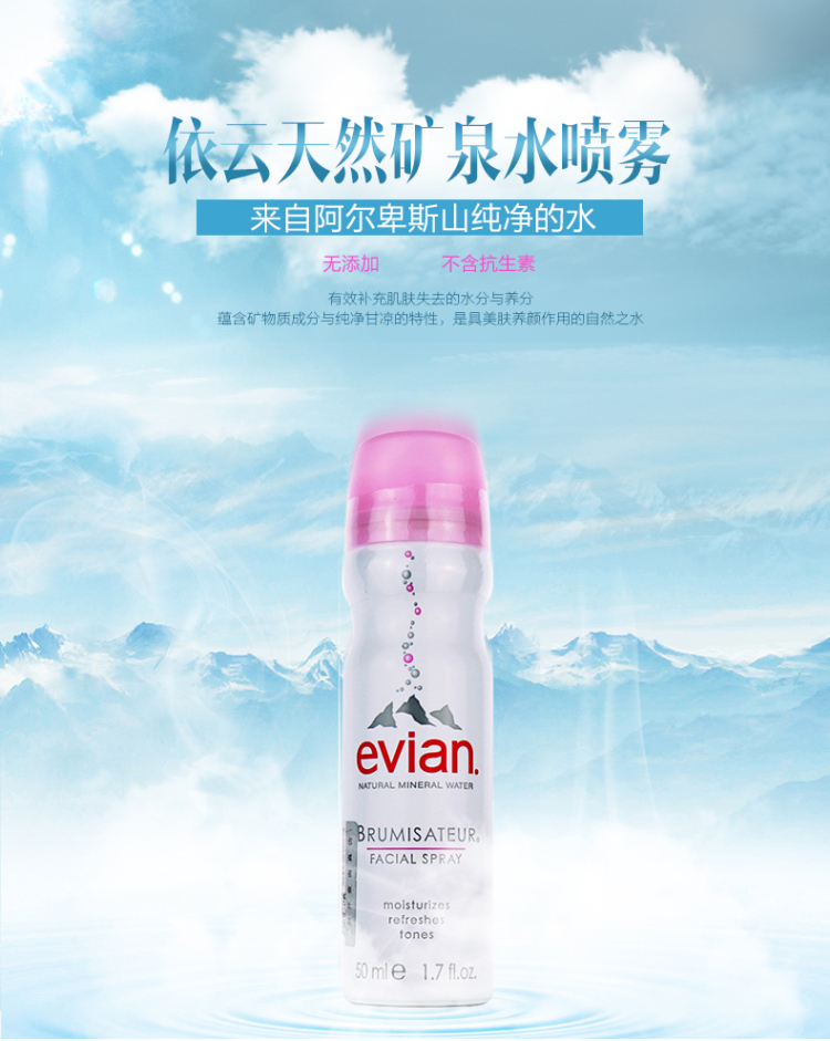 商品名称:法国进口依云天然矿泉水喷雾50ml(补水保湿)