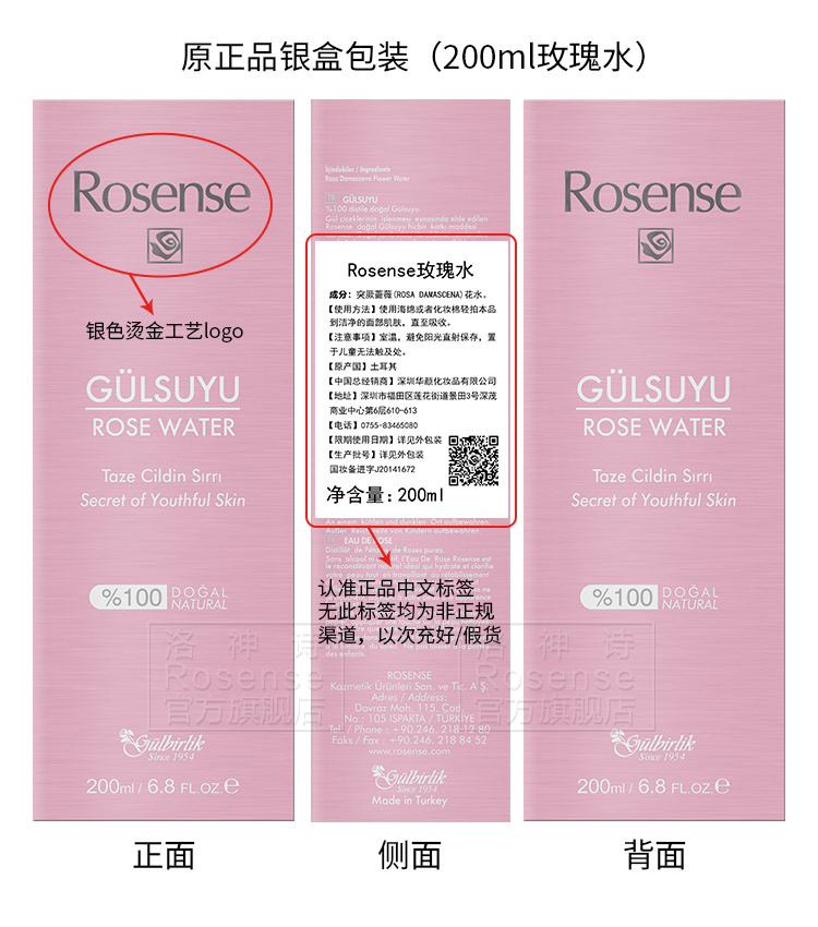 商品名称:土耳其洛神诗玫瑰水200ml(送压缩面膜10枚+玫瑰臻萃莹润精华面膜10ml一支)
