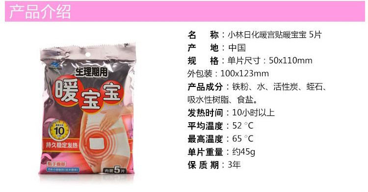 商品名称:小林制药暖宝宝生理期痛经暖宫贴迷你贴 5片装