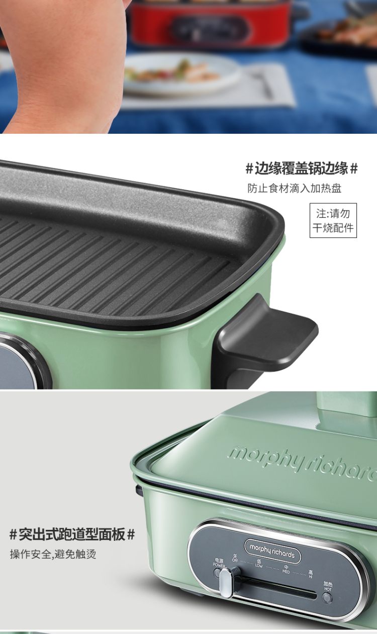 摩飞多功能锅3L(白 )(深锅+牛扒盘+蒸格+丸子盘+六圆盘+平烤盘)