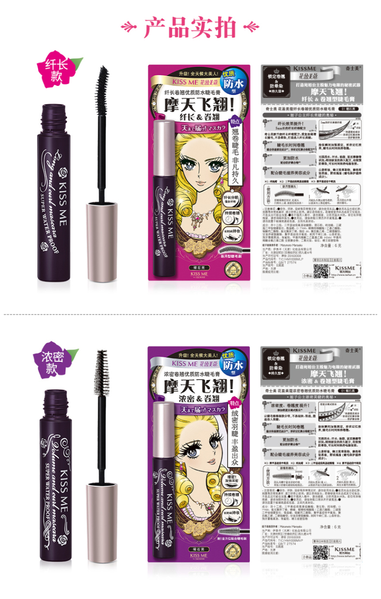 商品名称:KISSME/奇士美花盈美蔻精湛浓密卷翘防水睫毛膏01曜石黑