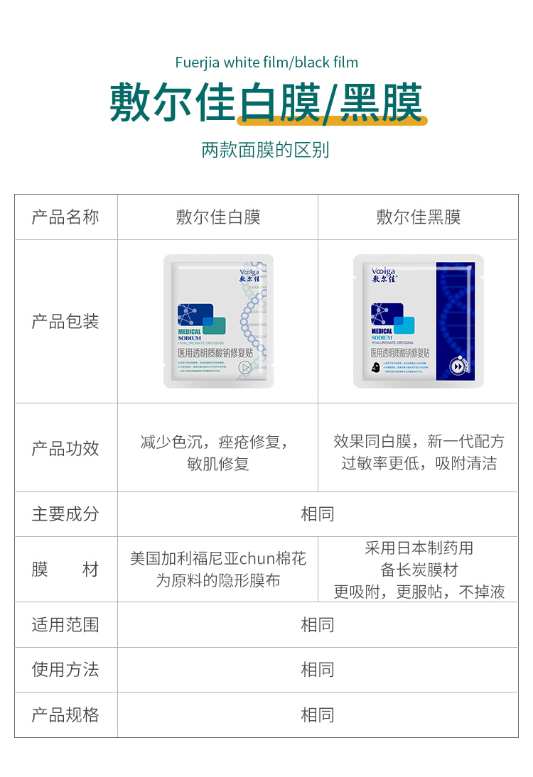 商品名称:敷尔佳医用透明质酸纳修复贴(白)5片装 2盒 1个疗程
