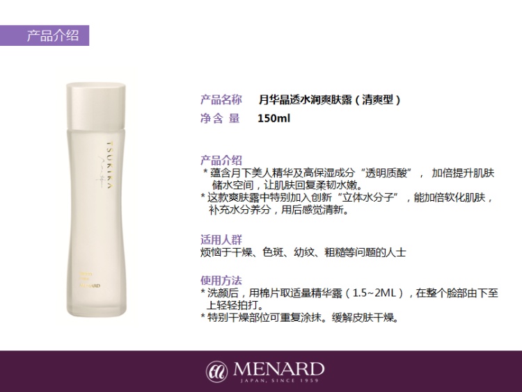 商品名称:日本美伊娜多月华晶透水润爽肤露150ml