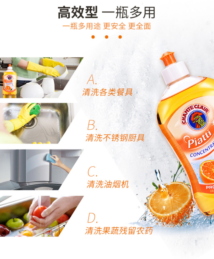 商品名称:意大利大公鸡管家果蔬餐具浓缩洗洁精香橙味500ml*3瓶装