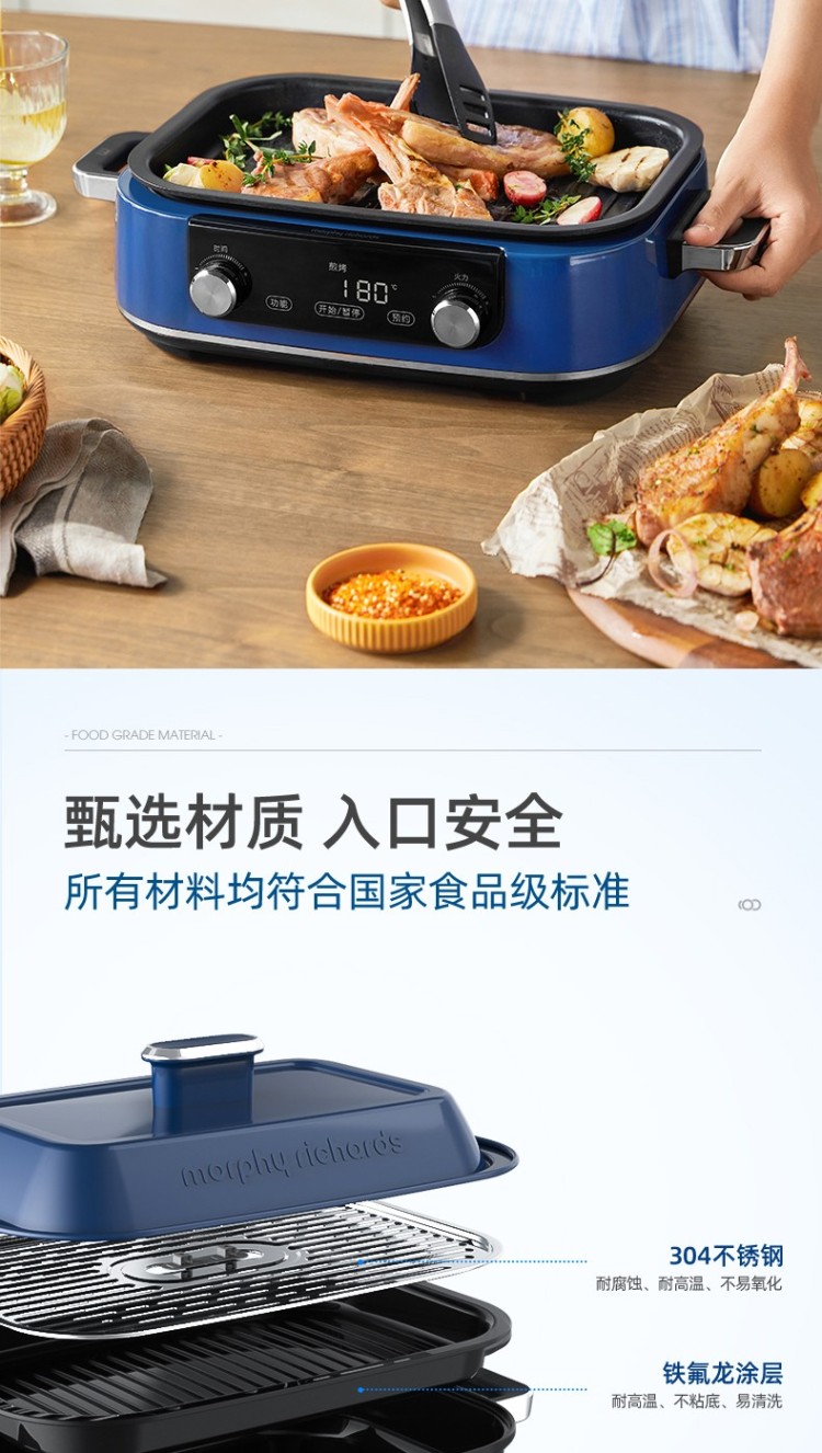 摩飞多功能锅5L升级版MR9099(红)(深锅+牛扒盘+蒸格)