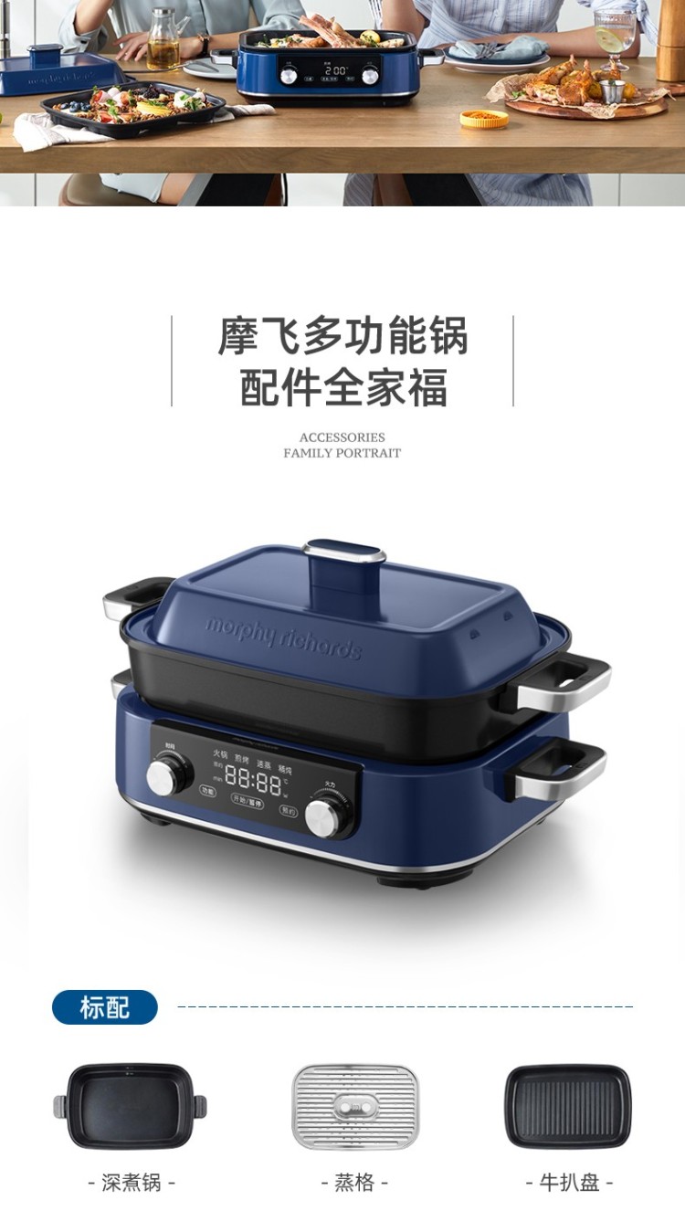 摩飞多功能锅5L升级版(白)(深锅+牛扒盘+蒸格)
