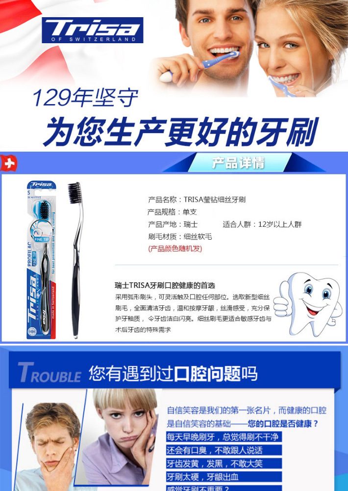 商品名称:瑞士TRISA莹钻细丝牙刷(瑞士进口 百年品牌 热销全球)