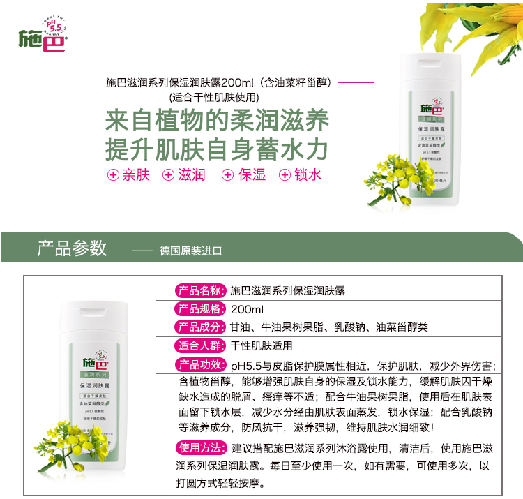 商品名称:德国进口施巴滋润系列保湿润肤露200ml