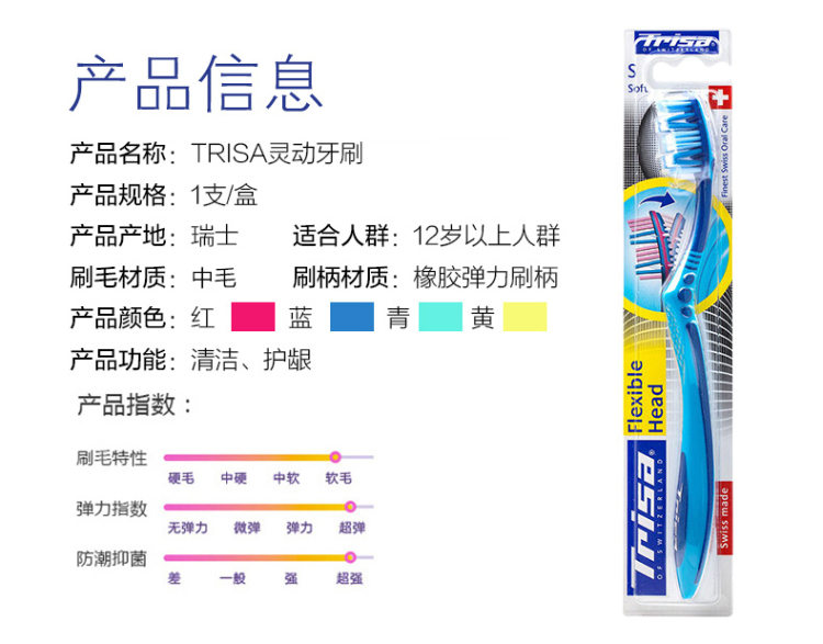 商品名称:瑞士TRISA灵动牙刷(中毛)(瑞士进口 百年品牌 热销全球)